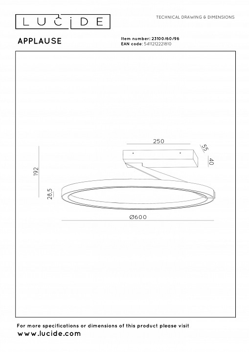 Размеры, мм | 600x192 |