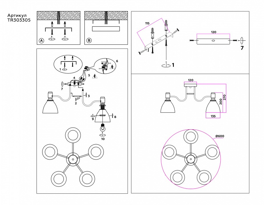 Количество плафонов | 5 |