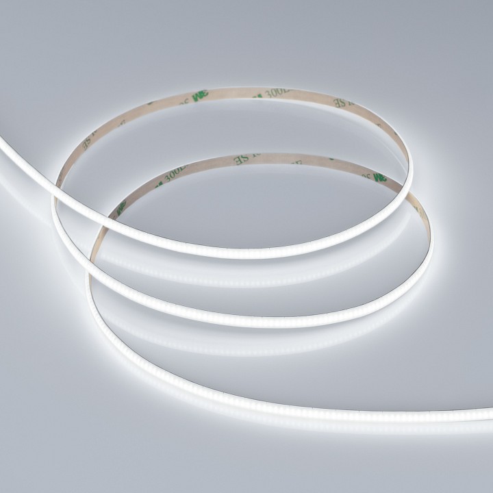 Дополнительные параметры | Лента COB сплошной засветки без видимых светодиодов. Кристаллы CSP 504 шт/м. Цвет свечения БЕЛЫЙ 6000K, индекс цветопередачи CRI>90, угол 150°. Мощность 6.5 Вт/м, питание 12 В. Размеры 5000х5х1.6 мм. Мин.отрезок 7.94 мм. 3M скотч для установки. Пакет 5м. Цена за 1м. Гарантия 3 года. Обязательна установка на профиль. |