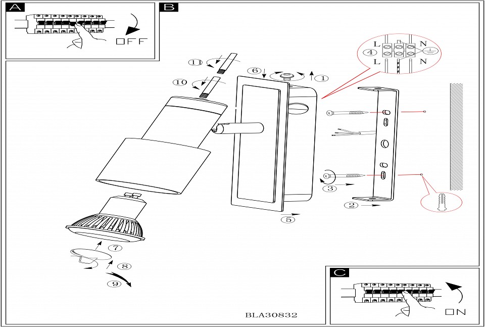 | Дополнительные параметры | поворотный светильник предназначен для использования со скрытой проводкой |